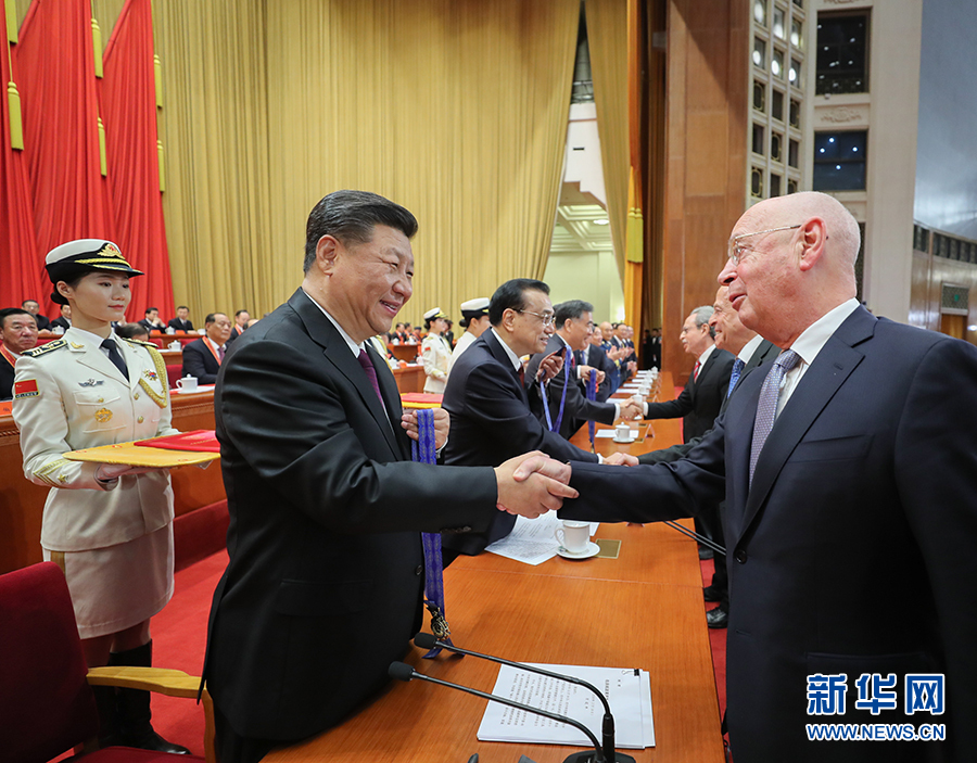 王滬寧宣讀《中共中央 國務院關于表彰改革開放杰出貢獻人員的決定》。決定指出,黨中央、國務院決定,授予于敏等100名同志改革先鋒稱號,頒授改革先鋒獎章;為感謝國際社會對中國改革開放事業(yè)的支持和幫助,向阿蘭·梅里埃等10名國際友人頒授中國改革友誼獎章。大會宣讀了授予改革先鋒稱號、中國改革友誼獎章人員名單。