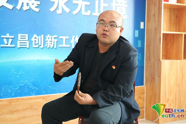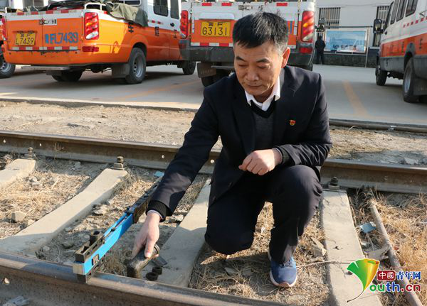 張立昌演示新型軌廓道尺與普通道尺使用區(qū)別。中國(guó)青年網(wǎng)記者 李川 攝