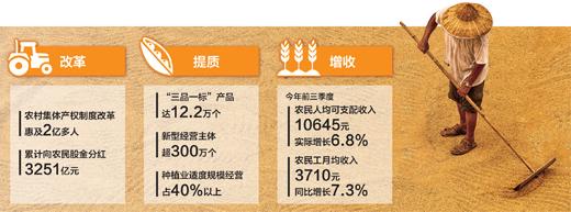 這一年,以農(nóng)業(yè)供給側(cè)結(jié)構(gòu)性改革為主線,由增產(chǎn)導(dǎo)向轉(zhuǎn)變?yōu)樘豳|(zhì)導(dǎo)向,質(zhì)量興農(nóng)、綠色興農(nóng)、品牌強(qiáng)農(nóng)正成為農(nóng)業(yè)發(fā)展的主旋律。這一年,深化戶(hù)籍制度改革,推進(jìn)異地就醫(yī)結(jié)算,農(nóng)民工享受到更多公共服務(wù)。這一年,整治農(nóng)村人居環(huán)境,大病救治范圍擴(kuò)大,農(nóng)村民生持續(xù)改善……