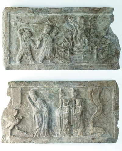 2014年起,考古隊對位于遼寧省北鎮(zhèn)市的新立遼代建筑遺址、琉璃寺遺址進(jìn)行了考古發(fā)掘。在新立遺址,發(fā)現(xiàn)了一組較完整的遼代四合院式建筑基址。考古領(lǐng)隊萬雄飛介紹,出土遺物的瓦件絕大多數(shù)為綠色琉璃,“證明該四合院建筑為一座滿鋪綠琉璃瓦的高等級建筑。正殿周圍還出土了大量鋪地花斑石殘塊,這種高級石材一般僅用于皇家宮殿和陵寢建筑?!闭钪线€出土了一些玉冊殘塊,有契丹小字和漢字兩套。遺址東側(cè)的坡地上出土了一件具有皇家氣派的大型石螭首。通過與遼慶陵的比較,并結(jié)合史料綜合分析,專家認(rèn)為這里就是遼代乾陵的陵前祭殿。