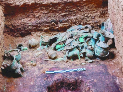 通過對115座墓葬的考古發(fā)掘,發(fā)現(xiàn)大多與兩周時期周系墓葬的特征保持了明顯的一致性。大墓和部分中型墓雖遭嚴(yán)重盜掘,但仍發(fā)掘清理出大量青銅器,以及金器、玉器、鐵器、陶器和漆木器等珍貴文物。最惹眼的是,大中型墓中,多隨葬有精美的漆木器,如鐘磬架子、幾案、豆等。