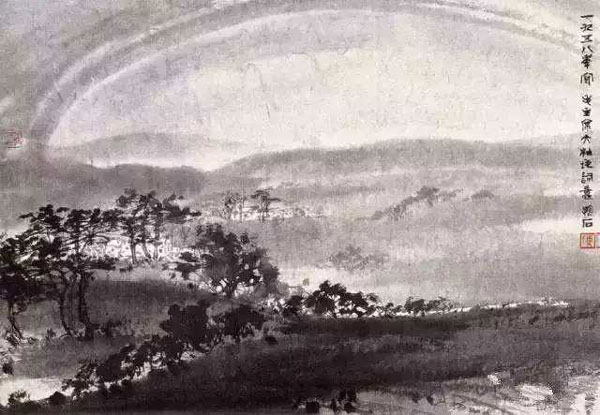 赤橙黃綠青藍紫,誰持彩練當(dāng)空舞?雨后復(fù)斜陽,關(guān)山陣陣蒼。