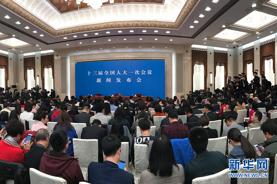 3月4日,十三屆全國人大一次會議在人民大會堂新聞發(fā)布廳舉行新聞發(fā)布會,由大會發(fā)言人張業(yè)遂就大會議程和人大工作相關(guān)的問題回答中外記者的提問。圖為新聞發(fā)布會現(xiàn)場。新華網(wǎng)/中國政府網(wǎng) 陳杰 攝