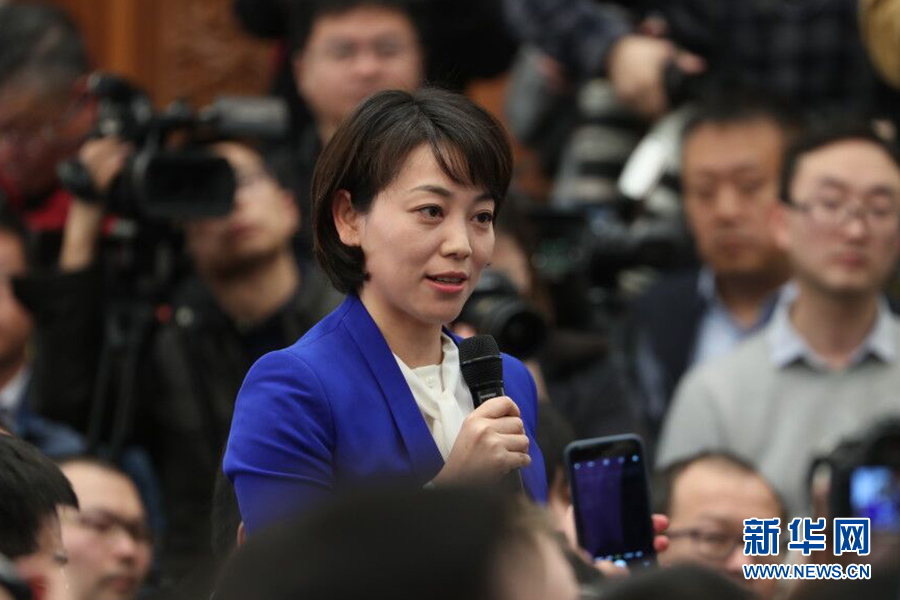 3月4日,十三屆全國人大一次會(huì)議在人民大會(huì)堂新聞發(fā)布廳舉行新聞發(fā)布會(huì),由大會(huì)發(fā)言人張業(yè)遂就大會(huì)議程和人大工作相關(guān)的問題回答中外記者的提問。圖為中央電視臺(tái)記者提問。新華網(wǎng)/中國政府網(wǎng) 陳杰 攝