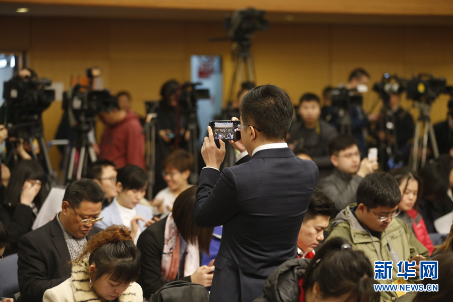 十三屆全國人大一次會議新聞中心3月6日上午10時在梅地亞中心多功能廳舉行記者會,邀請國家發(fā)展和改革委員會主任何立峰、副主任張勇、副主任寧吉喆就“創(chuàng)新和完善宏觀調(diào)控,推動高質(zhì)量發(fā)展”相關(guān)問題回答中外記者提問。圖為記者在現(xiàn)場拍攝。 新華網(wǎng)/中國政府網(wǎng) 陳杰 攝