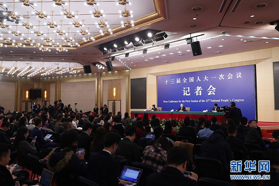十三屆全國人大一次會(huì)議新聞中心于3月7日在梅地亞中心多功能廳舉行記者會(huì),邀請(qǐng)國務(wù)院扶貧辦主任劉永富就“打好精準(zhǔn)脫貧攻堅(jiān)戰(zhàn)”的相關(guān)問題回答中外記者的提問。圖為記者會(huì)現(xiàn)場。新華網(wǎng)/中國政府網(wǎng) 陳杰 攝