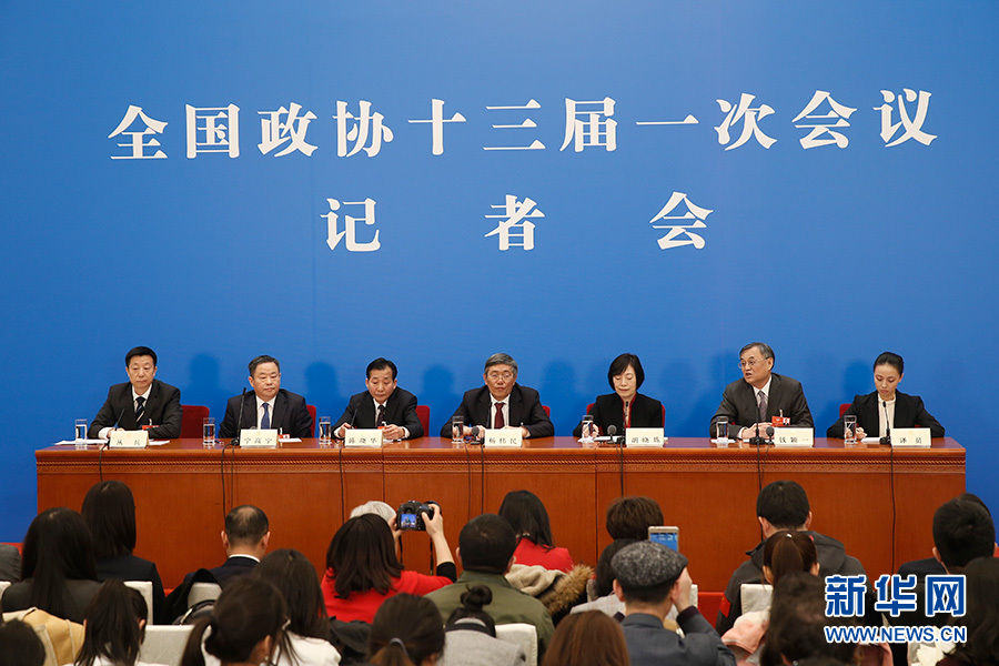 全國(guó)政協(xié)十三屆一次會(huì)議3月8日15:00在人民大會(huì)堂新聞發(fā)布廳舉行第二場(chǎng)記者會(huì),邀請(qǐng)中央財(cái)經(jīng)領(lǐng)導(dǎo)小組辦公室副主任楊偉民,中國(guó)進(jìn)出口銀行董事長(zhǎng)、黨委書(shū)記胡曉煉,農(nóng)業(yè)部原副部長(zhǎng)陳曉華,全國(guó)工商聯(lián)副主席、清華大學(xué)經(jīng)濟(jì)管理學(xué)院院長(zhǎng)錢(qián)穎一,中國(guó)中化集團(tuán)有限公司黨組書(shū)記、董事長(zhǎng)寧高寧就推動(dòng)經(jīng)濟(jì)高質(zhì)量發(fā)展回答記者提問(wèn)。圖為記者會(huì)現(xiàn)場(chǎng)。新華網(wǎng)/中國(guó)政府網(wǎng) 翟子赫 攝?