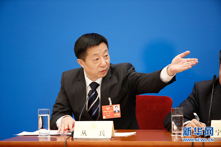 全國政協(xié)十三屆一次會(huì)議3月8日15:00在人民大會(huì)堂新聞發(fā)布廳舉行第二場記者會(huì),邀請中央財(cái)經(jīng)領(lǐng)導(dǎo)小組辦公室副主任楊偉民,中國進(jìn)出口銀行董事長、黨委書記胡曉煉,農(nóng)業(yè)部原副部長陳曉華,全國工商聯(lián)副主席、清華大學(xué)經(jīng)濟(jì)管理學(xué)院院長錢穎一,中國中化集團(tuán)有限公司黨組書記、董事長寧高寧就推動(dòng)經(jīng)濟(jì)高質(zhì)量發(fā)展回答記者提問。圖為記者會(huì)主持人叢兵 。新華網(wǎng)/中國政府網(wǎng) 翟子赫攝