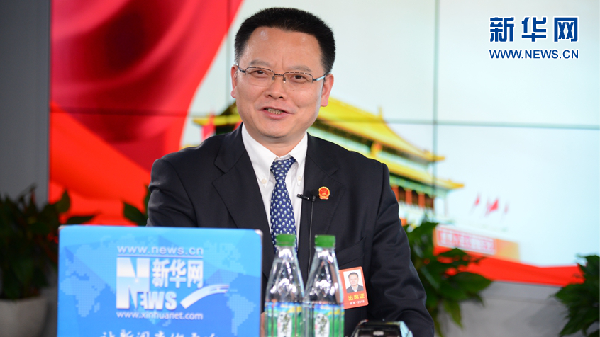 全國人大代表、池州市委副書記、市長雍成瀚做客新華網(wǎng)2018全國兩會特別訪談。新華網(wǎng)楊濛攝