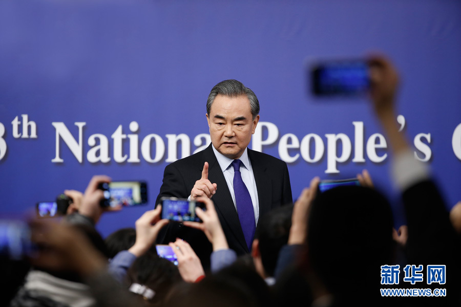 十三屆全國人大一次會議新聞中心3月8日上午10時在梅地亞中心多功能廳舉行記者會,邀請外交部部長王毅就“中國外交政策和對外關(guān)系”回答中外記者提問。圖為王毅與現(xiàn)場記者互動。 新華網(wǎng)/中國政府網(wǎng) 陳杰 攝