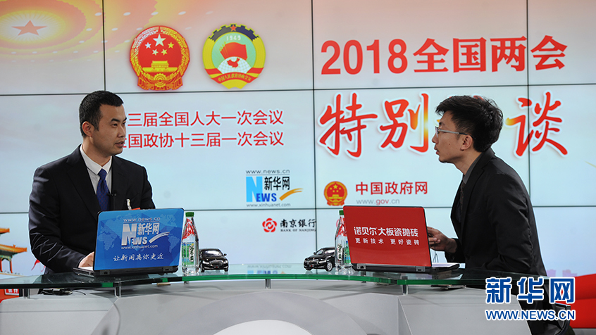 3月9日,全國人大代表、遼寧三溝酒業(yè)有限責(zé)任公司董事長吳京耕(左)做客新華網(wǎng)2018全國兩會特別訪談。新華網(wǎng)?郭小天攝