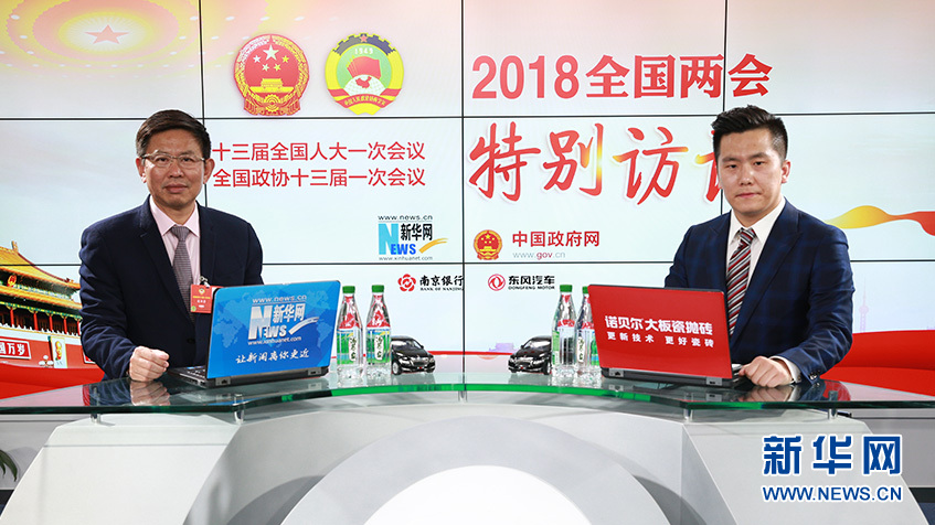 全國政協(xié)委員、華堅(jiān)集團(tuán)董事長張華榮做客新華網(wǎng)2018全國兩會(huì)特別訪談。新華網(wǎng) 楊锘攝