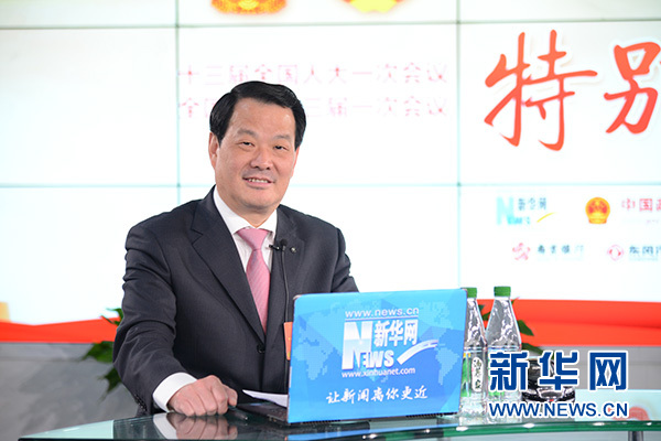 全國人大代表,中建材蚌埠玻璃工業(yè)設(shè)計(jì)研究院院長(zhǎng)彭壽做客新華網(wǎng)2018全國兩會(huì)特別訪談 新華網(wǎng)楊濛 攝