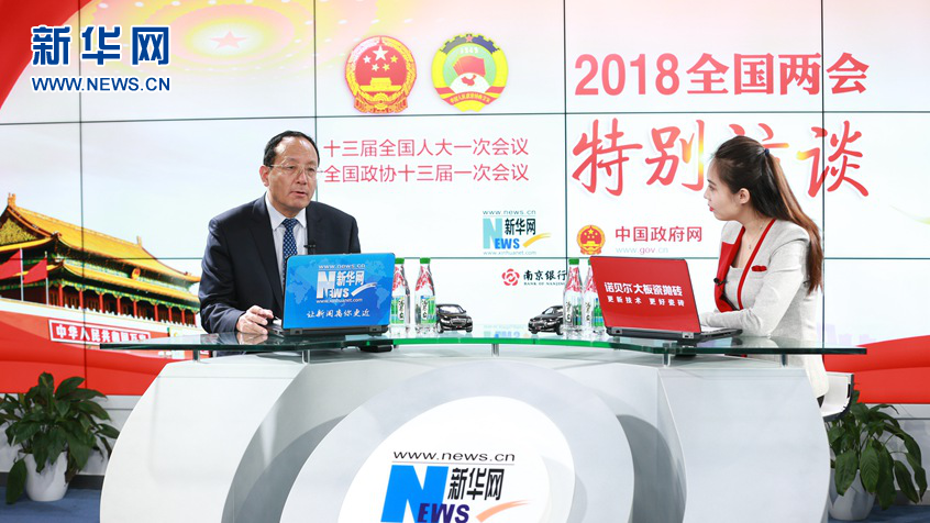 圖為全國人大代表,云南省迪慶藏族自治州委副書記、州長齊建新(左)新做客新華網(wǎng)2018全國兩會特別訪談。新華網(wǎng) 楊锘攝