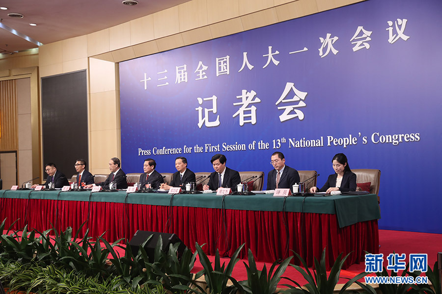 十三屆全國人大一次會(huì)議新聞中心于3月12日15時(shí)在梅地亞中心多功能廳舉行記者會(huì),邀請(qǐng)十二屆全國人大財(cái)經(jīng)委副主任委員尹中卿、教科文衛(wèi)委副主任委員吳恒、環(huán)資委副主任委員袁駟、內(nèi)司委委員鄭功成,全國人大常委會(huì)預(yù)算工委副主任劉修文、常委會(huì)辦公廳秘書局巡視員傅文杰就“人大監(jiān)督工作”相關(guān)問題回答中外記者提問。圖為記者會(huì)現(xiàn)場(chǎng)。新華網(wǎng)/中國政府網(wǎng) 陳杰?攝