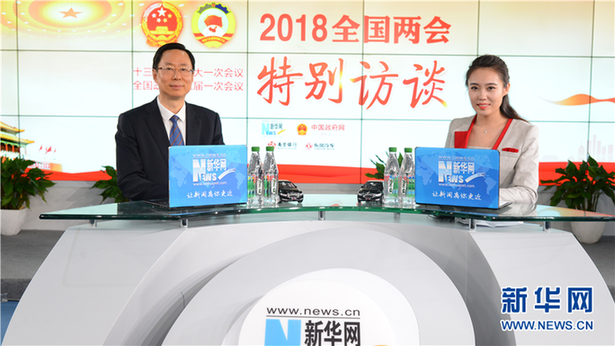 3月14日,全國人大代表、南京市市長藍(lán)紹敏(左)做客新華網(wǎng)2018全國兩會(huì)特別訪談。新華網(wǎng) 楊濛攝