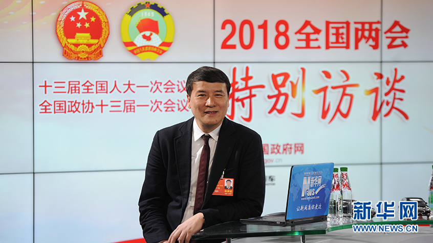 ??????? 圖為全國(guó)政協(xié)委員,中國(guó)文聯(lián)副主席、中國(guó)美術(shù)學(xué)院院長(zhǎng)許江做客新華網(wǎng)2018全國(guó)兩會(huì)特別訪談。新華網(wǎng) 郭小天攝