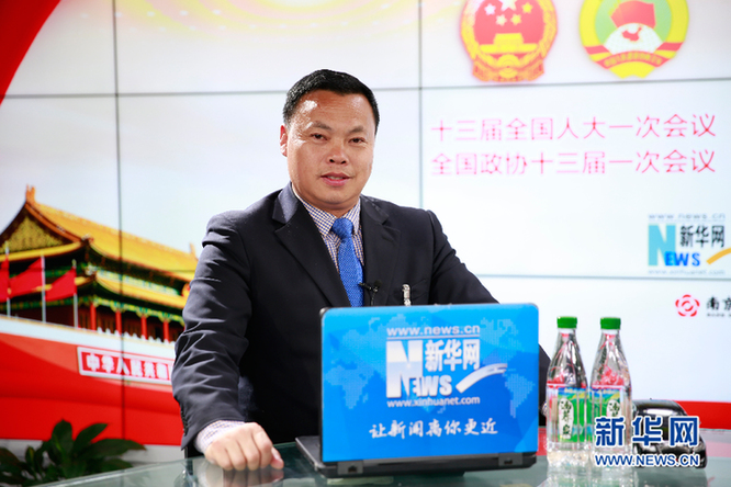 圖為河南省平頂山市寶豐縣大黃村黨支部書(shū)記馬豹子做客新華網(wǎng)2018全國(guó)兩會(huì)特別訪談