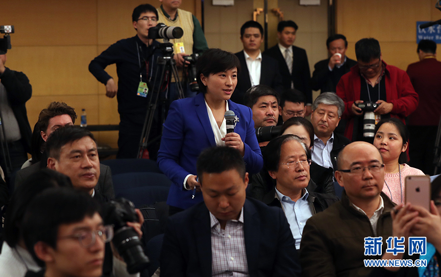 十三屆全國人大一次會議新聞中心于3月17日15時在梅地亞中心多功能廳舉行記者會,邀請環(huán)保部部長李干杰就“打好污染防治攻堅戰(zhàn)”相關問題回答中外記者提問。圖為中國國際電視臺記者提問。新華網/中國政府網 曲植 攝