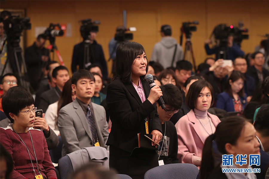 十三屆全國人大一次會議新聞中心3月17日(星期六)15時在梅地亞中心多功能廳舉行記者會,邀請環(huán)保部部長李干杰就“打好污染防治攻堅(jiān)戰(zhàn)”相關(guān)問題回答中外記者提問。圖為中央人民廣播電臺、央廣網(wǎng)記者提問。新華網(wǎng)/中國政府網(wǎng) 曲植 攝
