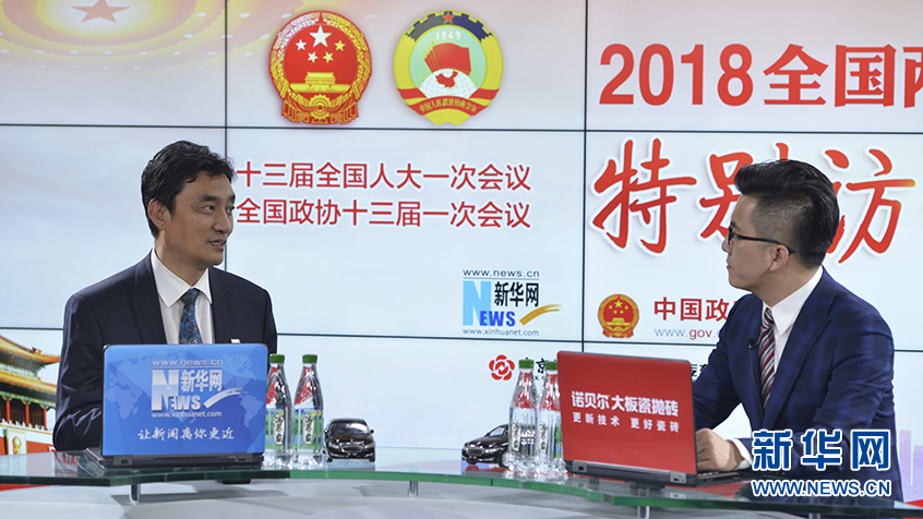 圖為18日,全國(guó)人大代表,云南省曲靖市委副書(shū)記、市長(zhǎng)董保同做客新華網(wǎng)2018全國(guó)兩會(huì)特別訪談。新華網(wǎng) 李相博攝