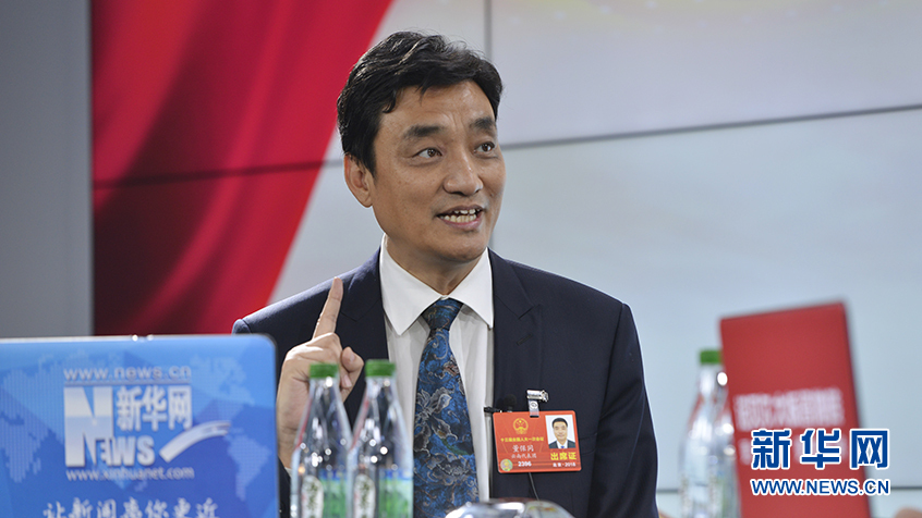 圖為18日,全國(guó)人大代表,云南省曲靖市委副書(shū)記、市長(zhǎng)董保同做客新華網(wǎng)2018全國(guó)兩會(huì)特別訪談。新華網(wǎng) 李相博攝