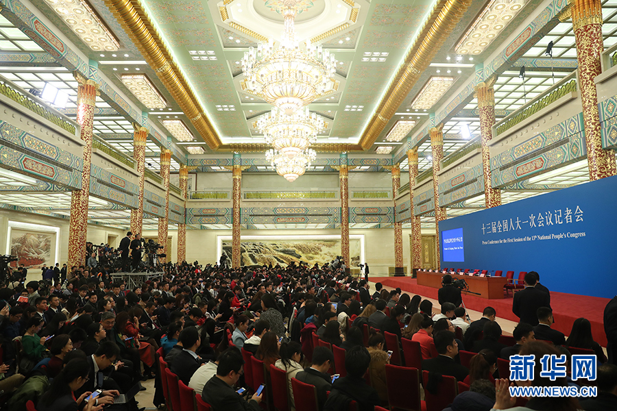 3月20日上午,十三屆全國(guó)人大一次會(huì)議閉幕后,國(guó)務(wù)院總理李克強(qiáng)將在人民大會(huì)堂三樓金色大廳會(huì)見采訪十三屆全國(guó)人大一次會(huì)議的中外記者并回答記者提出的問(wèn)題。圖為記者會(huì)現(xiàn)場(chǎng)。 新華網(wǎng)/中國(guó)政府網(wǎng) 翟子赫 攝