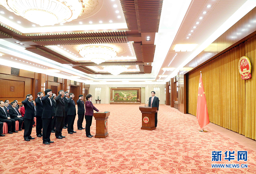 全國人大常委會舉行憲法宣誓儀式 栗戰(zhàn)書主持并監(jiān)誓-新華網(wǎng)