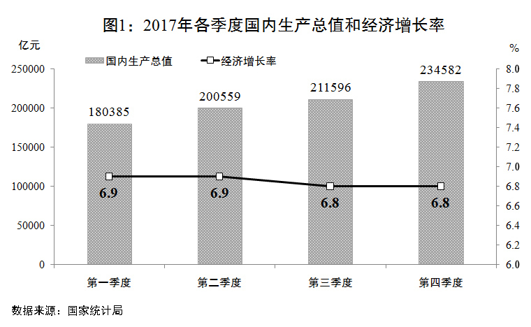 從2017年經(jīng)濟社會發(fā)展情況看,經(jīng)濟增長、就業(yè)、價格總水平、國際收支平衡等主要指標保持在合理區(qū)間,創(chuàng)新驅(qū)動、民生保障等反映發(fā)展質(zhì)量和效益的指標進一步改善,總的完成情況是好的。