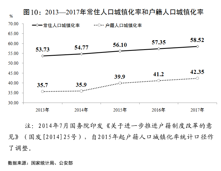 五是以人為核心的新型城鎮(zhèn)化建設(shè)扎實推進。農(nóng)業(yè)轉(zhuǎn)移人口市民化有序推進,戶籍制度改革和居住證制度落地實施。全國常住人口城鎮(zhèn)化率達到58.52%,戶籍人口城鎮(zhèn)化率達到42.35%,均比上年增加1個百分點左右。城鎮(zhèn)化空間格局持續(xù)優(yōu)化,長三角、長江中游、成渝、哈長、中原、北部灣等城市群規(guī)劃加快實施,關(guān)中平原、呼包鄂榆等跨省區(qū)城市群規(guī)劃編制完成。以市場化方式規(guī)范推進特色小鎮(zhèn)和小城鎮(zhèn)建設(shè)。新型城鎮(zhèn)化綜合試點取得積極進展。