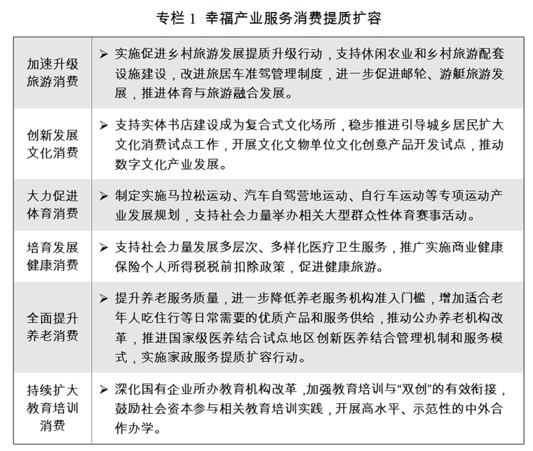 一是完善促進消費的體制機制。繼續(xù)推進實施“十大擴消費行動”,支持社會力量進入醫(yī)療、養(yǎng)老、教育、文化、體育等領(lǐng)域,推動互聯(lián)網(wǎng)與養(yǎng)老、醫(yī)療、家政、快遞等服務(wù)業(yè)融合發(fā)展。大力支持健康產(chǎn)業(yè)發(fā)展,建設(shè)優(yōu)質(zhì)養(yǎng)老服務(wù)供給體系。推進家政服務(wù)提質(zhì)擴容,推動家政服務(wù)從業(yè)人員職業(yè)化建設(shè)。