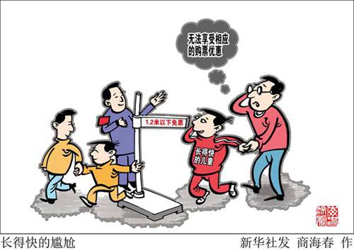 無論是聯(lián)合國兒童權(quán)利公約,還是我國相關(guān)法律法規(guī),界定兒童的唯一標(biāo)準(zhǔn)就是年齡。他們與成年人最大的區(qū)別,是履行社會責(zé)任能力的不足,與高矮胖瘦無關(guān)。兒童票優(yōu)惠政策是國家和社會對這一特殊群體的關(guān)懷,在個體生理狀況存在差異的情況下,年齡是最科學(xué)也最公平的標(biāo)準(zhǔn)。若依某項生理指標(biāo)制定優(yōu)惠標(biāo)準(zhǔn),不但有失公允,而且有歧視之嫌。