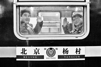 相比平時(shí)的車廂,最后一趟6451次多了不少車迷走來(lái)走去,有人忙著補(bǔ)票,有人忙著拍照。列車走行37分鐘到達(dá)黃村車站,北青報(bào)記者隨著二三十名乘客下車。列車???分鐘,又有百余名乘客陸續(xù)上車,將5節(jié)車廂幾乎坐滿。一聲清脆的鳴笛后,6451次緩緩消失在了夜幕中。今天上午,6452次將從楊村開(kāi)回北京站,這對(duì)老綠皮車將宣告停運(yùn)。