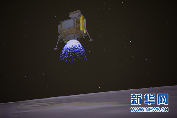 圖為1月3日在北京航天飛行控制中心拍攝的降落過程(示意圖)。新華社記者 金立旺攝
