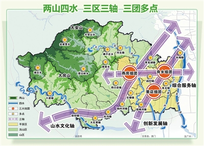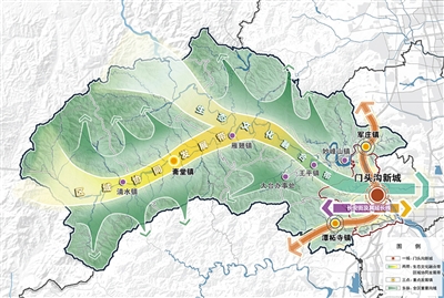 門頭溝空間結(jié)構(gòu)為“一城、兩帶、三點(diǎn)、多脈”。