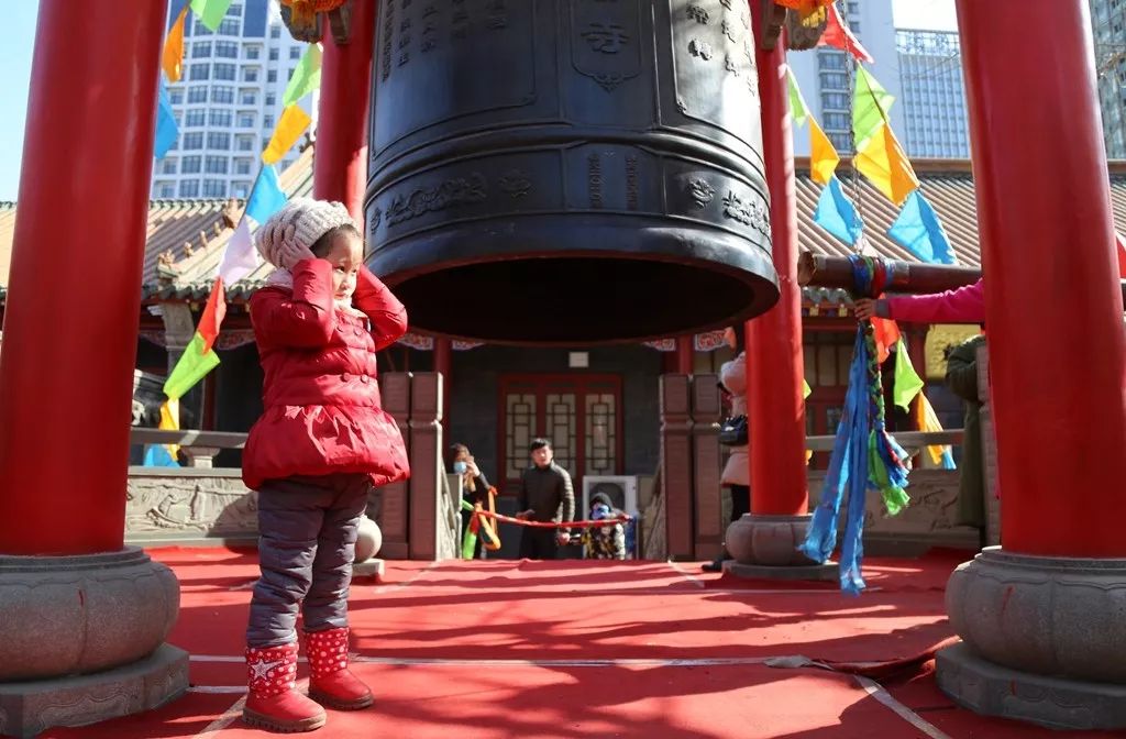 2018-02-16,遼寧沈陽。廟會(huì)上,人們敲響祈福的鐘聲。作者:老頑童