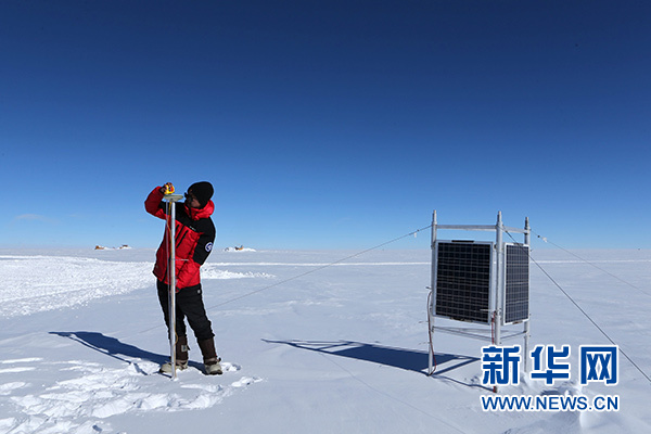 南極內陸冰蓋冰流運動監(jiān)測,是南極內陸考察的重要觀測項目,也是一個長期連續(xù)觀測項目??瓶缄爢T、武漢大學中國南極測繪研究中心副教授楊元德當天利用GPS測量了冰流速。