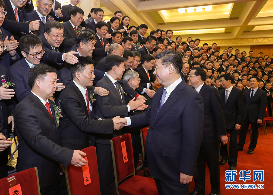 1月8日,2018年度國家科學技術獎勵大會在北京人民大會堂隆重舉行。這是會前,黨和國家領導人習近平、李克強、王滬寧、韓正等會見獲獎代表。 新華社記者 鞠鵬 攝