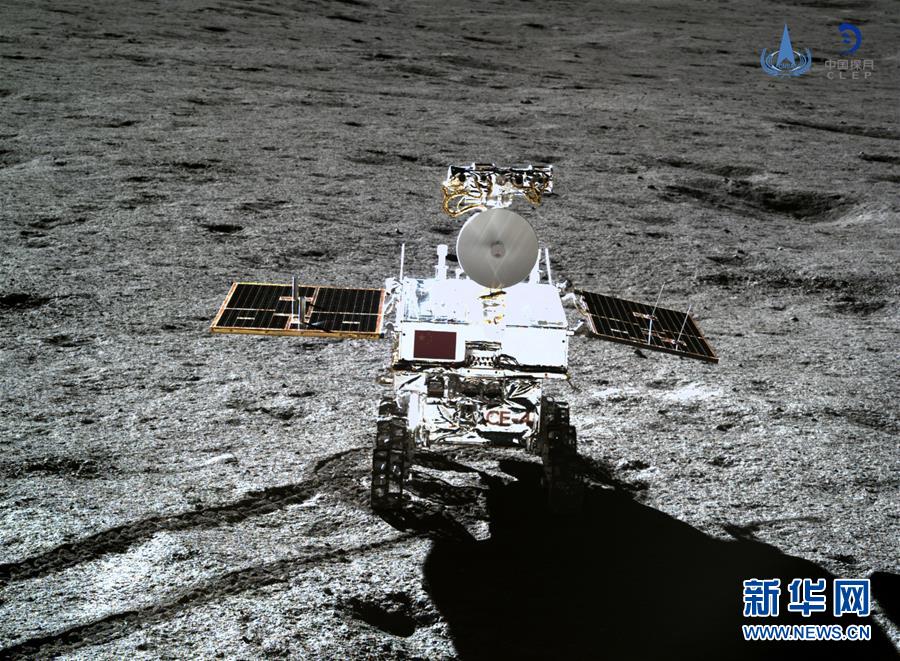這是嫦娥四號著陸器地形地貌相機對玉兔二號巡視器成像?!⌒氯A社發(fā)(國家航天局供圖)