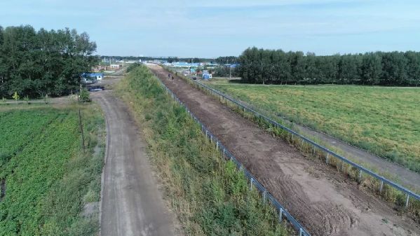 平改立工程免渡河鎮(zhèn)中項(xiàng)目,可以看到橋梁和居民樓之間的距離非常短。(8月27日 航拍圖)達(dá)日罕攝