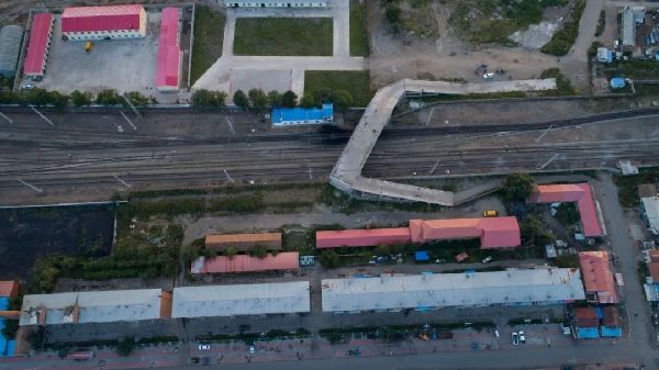 平改立工程K11公里道口航拍圖,可以看到,為了前往殯儀館,通過道口時(shí)唯一的選擇。(8月28日 航拍圖)達(dá)日罕攝
