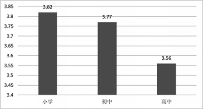 在6分中平均得分僅為3.16分的分值,說明當(dāng)下中國兒童在面對不同的人、想法與意見時的開放性不高。相對而言,小學(xué)生更樂于接受不同的想法與意見,高中生更傾向于堅持自己的看法與意見。