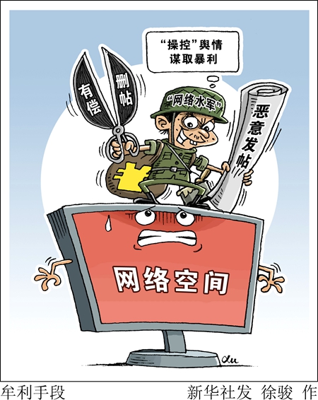 湖北、福建等地警方近日相繼破獲“網(wǎng)絡(luò)水軍”團伙犯罪案件,揭開了“網(wǎng)絡(luò)水軍”非法經(jīng)營的手法和套路?!靶氯A視點”記者調(diào)查發(fā)現(xiàn),“網(wǎng)絡(luò)水軍”明碼標價,通過刪帖、發(fā)帖,有的用幾十萬元就能“操控”輿情。
