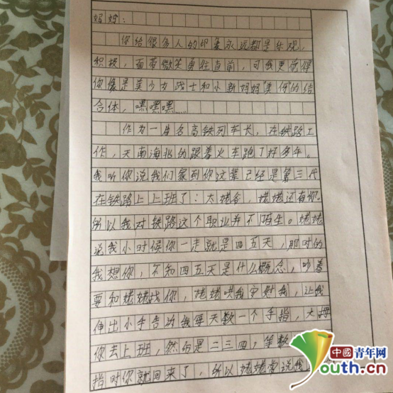 一年一度的春運(yùn)又開始了,13歲的女孩小嘉琪早已習(xí)慣了媽媽不能在家的春節(jié)。小嘉琪的媽媽是哈大高鐵車隊的列車長。今年她給媽媽寫了一封信,這封信里有埋怨、有理解、更有女兒對媽媽的愛……不禁讓人淚目。