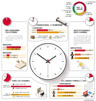 2018年,國(guó)家統(tǒng)計(jì)局組織開(kāi)展了第二次全國(guó)時(shí)間利用調(diào)查,該調(diào)查覆蓋11個(gè)?。ㄊ校?,采用國(guó)家統(tǒng)一的住戶(hù)收支與生活狀況調(diào)查樣本框,共抽樣調(diào)查20226戶(hù)48580人。昨日,《2018年全國(guó)時(shí)間利用調(diào)查公報(bào)》出爐,結(jié)果顯示,與2008年相比,中國(guó)居民的時(shí)間分配結(jié)構(gòu)發(fā)生了較大變化,睡覺(jué)休息和用餐時(shí)間增加,收入越低的居民看電視時(shí)間越多,每天上網(wǎng)時(shí)間增加2小時(shí)28分鐘。