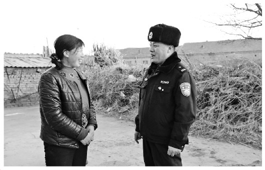小蒜溝站鐵路沿線村莊較多,村民大都有家養(yǎng)牲畜,巡線之余,民警們還要走街串巷,向村民們宣傳鐵路安全知識?!岸竽?今天又來到咱們家了,還是那個事,主要跟您說一下咱們家里養(yǎng)的牛,養(yǎng)的羊,一定不要去鐵路兩側(cè)放。知道吧,你忘了去年咱們簽的協(xié)議,所以說這事吧,咱們的鐵路安全很重要,一旦咱們?nèi)ツ欠叛蚍排?火車把咱牛羊撞了,咱們自己受損失?!庇捎诔D暄策壯簿€入村宣傳,民警和沿線村民都熟悉了,宣傳起來像是在嘮家常。