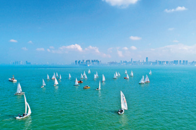 拆除了違建餐廳,修整了灌木叢,海口國(guó)家帆船基地的610個(gè)泊位,透光見(jiàn)海透綠見(jiàn)藍(lán)?!斑^(guò)去的海口公共帆船碼頭很小?,F(xiàn)在生活好了,愿意在文體活動(dòng)上投入消費(fèi)的人也多了。2018年,??谧プ『D辖ㄔO(shè)國(guó)際旅游消費(fèi)中心的機(jī)遇,加快了帆船港口建設(shè),讓更多的人體會(huì)到海上運(yùn)動(dòng)的樂(lè)趣和濱海城市的魅力?!狈圻\(yùn)營(yíng)方、??诤B眉瘓F(tuán)董事長(zhǎng)楊曉峰介紹。