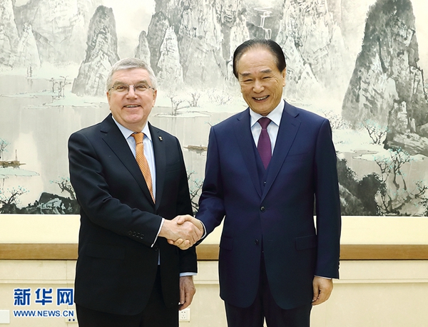 1月30日,新華社社長蔡名照在北京會(huì)見國際奧委會(huì)主席巴赫。新華社記者 鞠鵬 攝