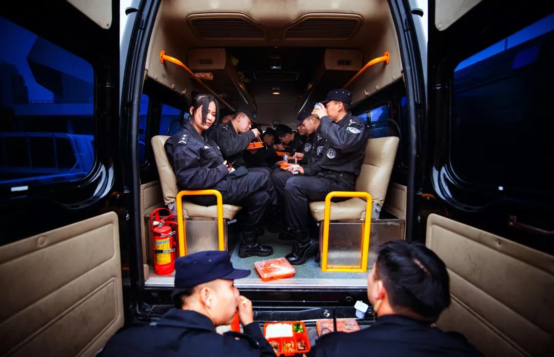 2019-01-30,江蘇省太倉(cāng)市。安保人員在執(zhí)行任務(wù)時(shí)就地晚餐。作者:漫畫旅館