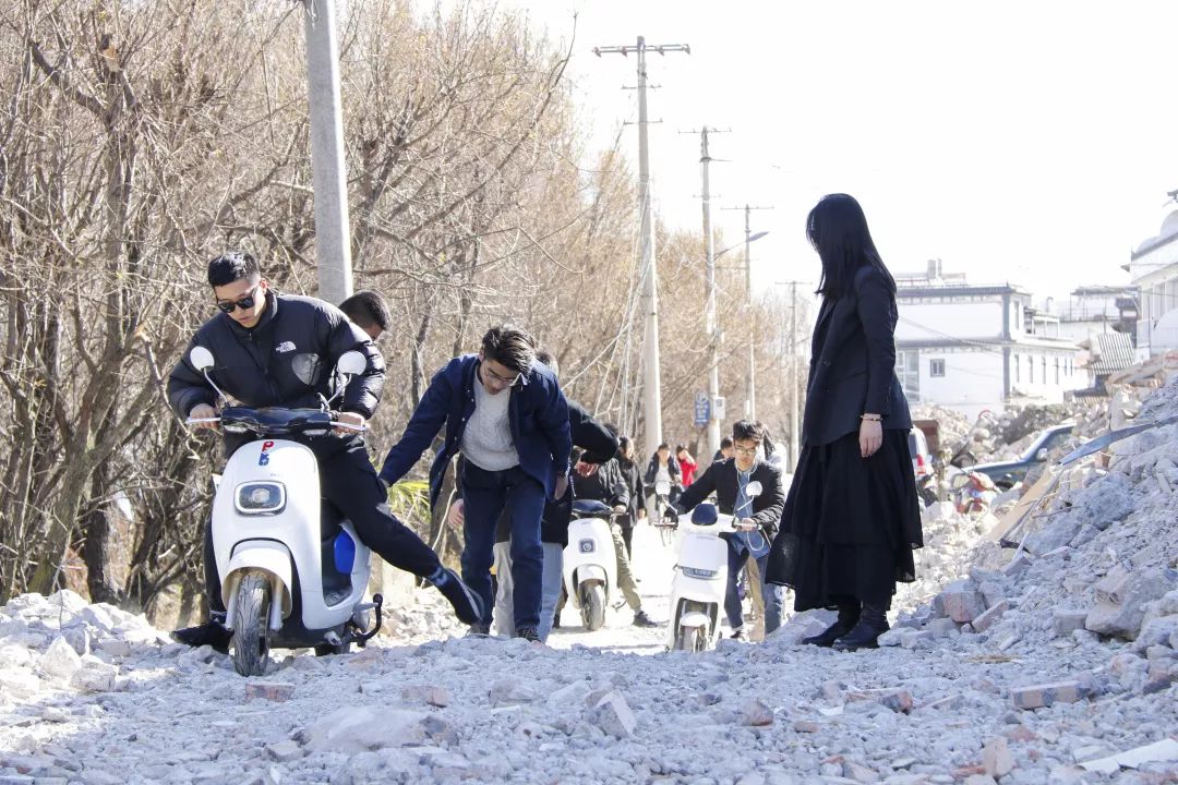 2019-01-03,云南省大理白族自治州。洱海環(huán)線由于拆遷道路并不平坦。是熱心游客們的互相幫助,才將一輛輛電動車送向平坦的路段。作者:Sherry